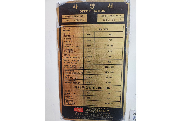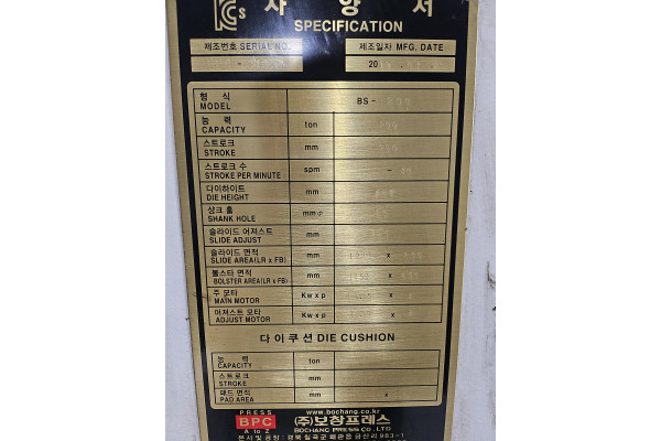 | 보창프레스 | 제조번호 | ton | 200-010159 | 200-010175 | 200-010176 | 200-010187 | 200-010188 |