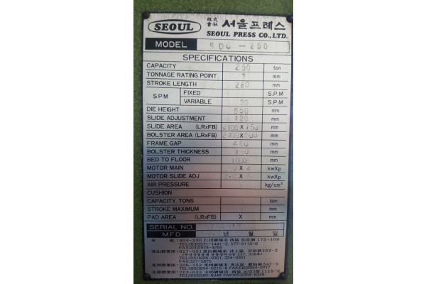 년식 2002스트로크 280SPM 30다이하이트 550볼스타 면적 2700*900슬라이드 면적 2100*750