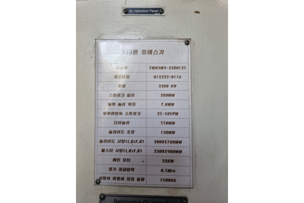 년식 2012스트로크 280SPM 25~50다이하이트 550볼스타 면적 2200*900슬라이드 면적 2000*700