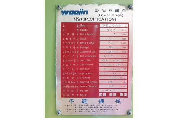년식 1994스트로크 250SPM 35다이하이트 480볼스타면적 1450*900슬라이드면적 1120*650