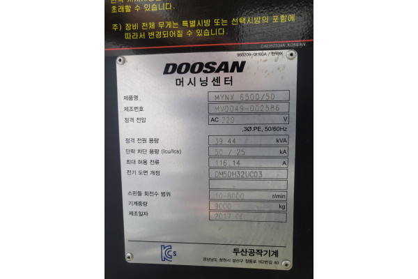 1. 두산6호 머시닝센타 MYNX-6500/50