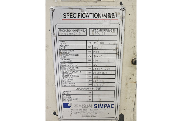모델명 : MCL2-300능력 : 300톤스트로크 : 200 mm