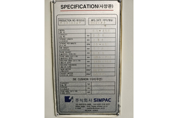 스트로크 : 250 mm스트로크 수 : 20 ~ 40다이하이트 : 500 mm