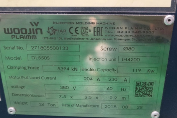 우진 사출기 550톤 하이브리드타입