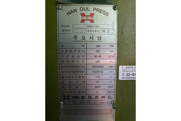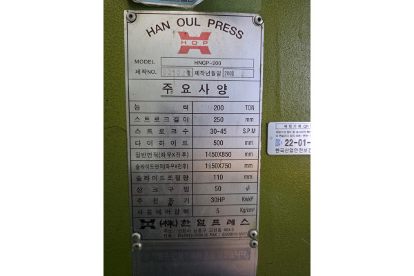 한얼프레스 C형싱글 200톤