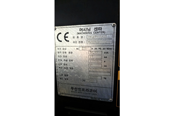 MYNX7500이송거리:1525x762x625테이블:1600x750시스템:FANUC i SeriesRPM:10,000BT40ATC:30AICC칩콘베어,버켓.상태:기계 이상 없고 상태 아주 좋습니다.