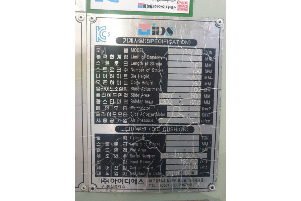 년식 2015스트로크 160SPM 150다이하이트 400볼스타 면적 1200*660슬라이드 면적 800*500