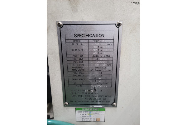 재료폭 : 50-500mm 재료두께 : 08~4.5mm Y 타입의 YNLF -50 Pinch roll : 1조 Feed roll : 1조 공압 : 5~7kg 상시 A/S 가능합니다!!